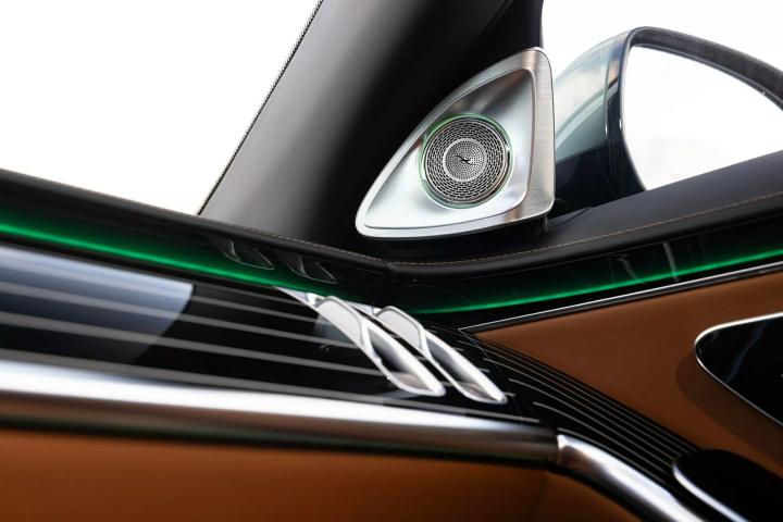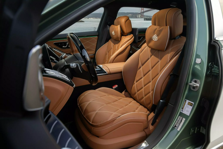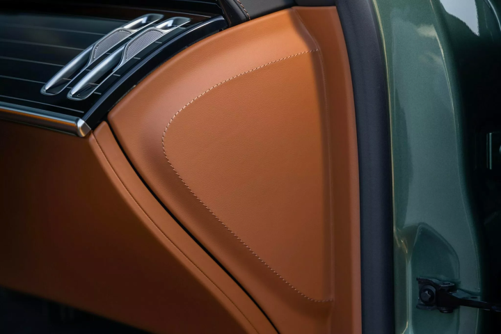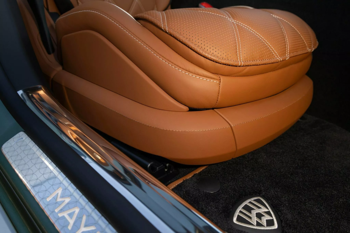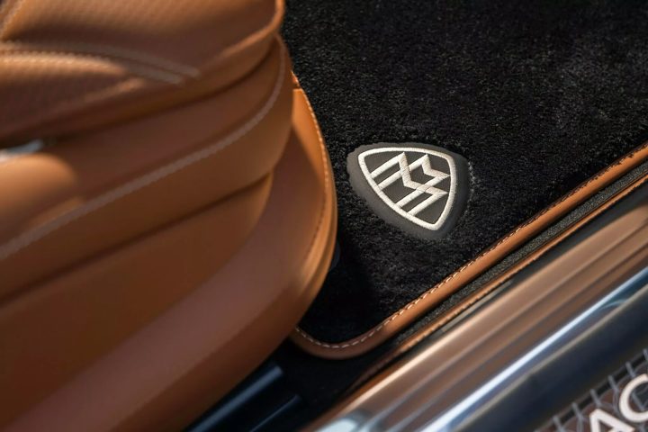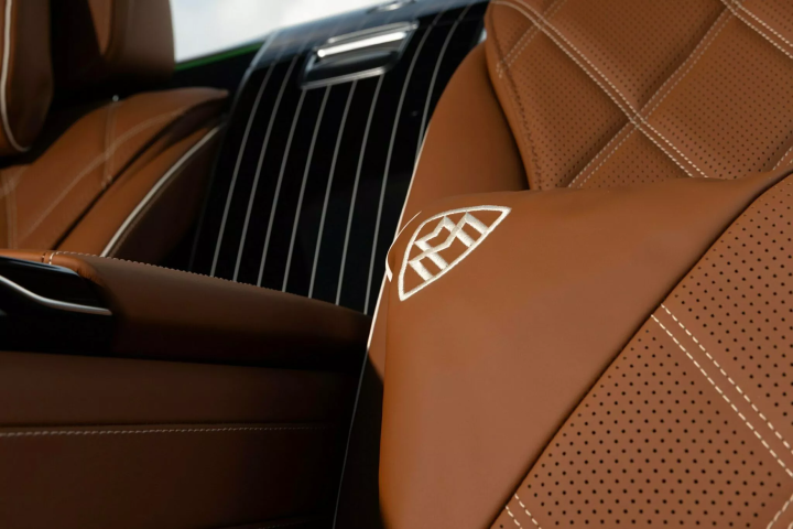 内饰方面,座舱采用手工缝制的浅棕色Nappa皮革,中控台印有“EditionEmeraldIsle1of25”徽标,地垫和门槛处也点缀迈巴赫专属元素。